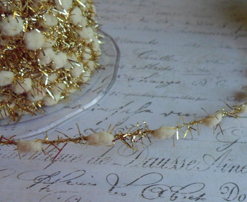 Cream and Gold Wired Mini Pom Pom Trim, approx 1/2 inch wide