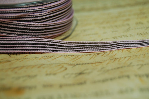 Pink and Chocolate Brown Striped Grosgrain Ribbon