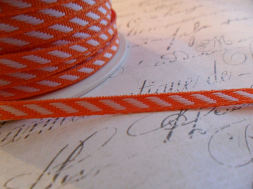 Petite Orange and White Diagonal Striped Ribbon 1/8 wide