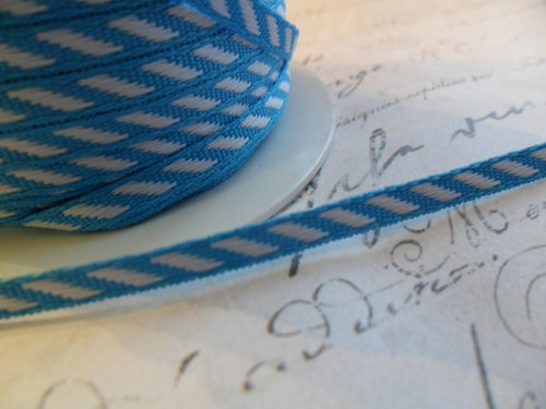 Petite Skye Blue and White Diagonal Stripe Ribbon 1/8 inch wide
