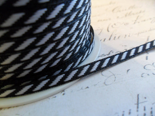 Petite White and Black Diagonal Stripe Ribbon 1/8 inch wide